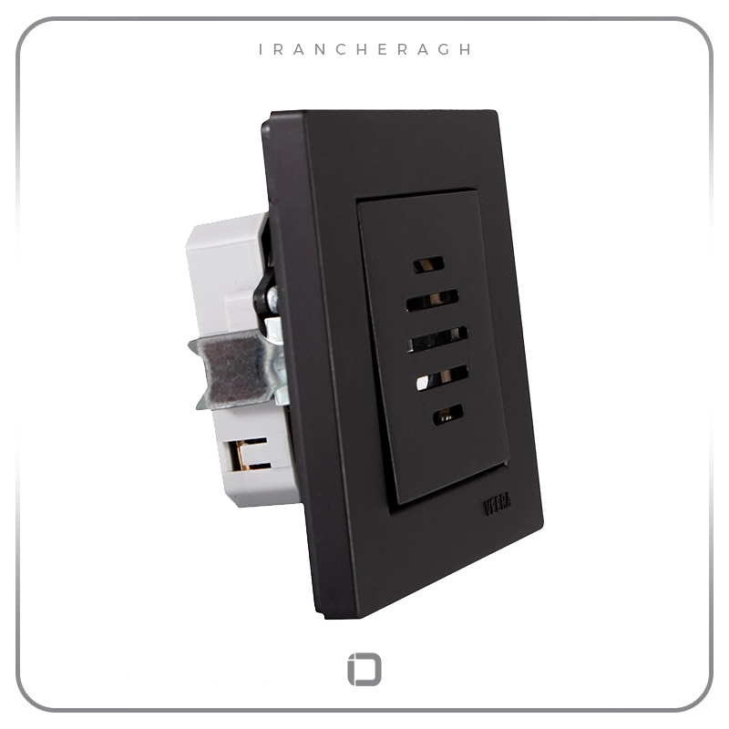 - رنگبندی: کلید و پریز ویرا مدل ساده: سفید، مشکی، بژ و نوکمدادی با رنگدانههای باکیفیت و مقاوم در برابر تغییر رنگ